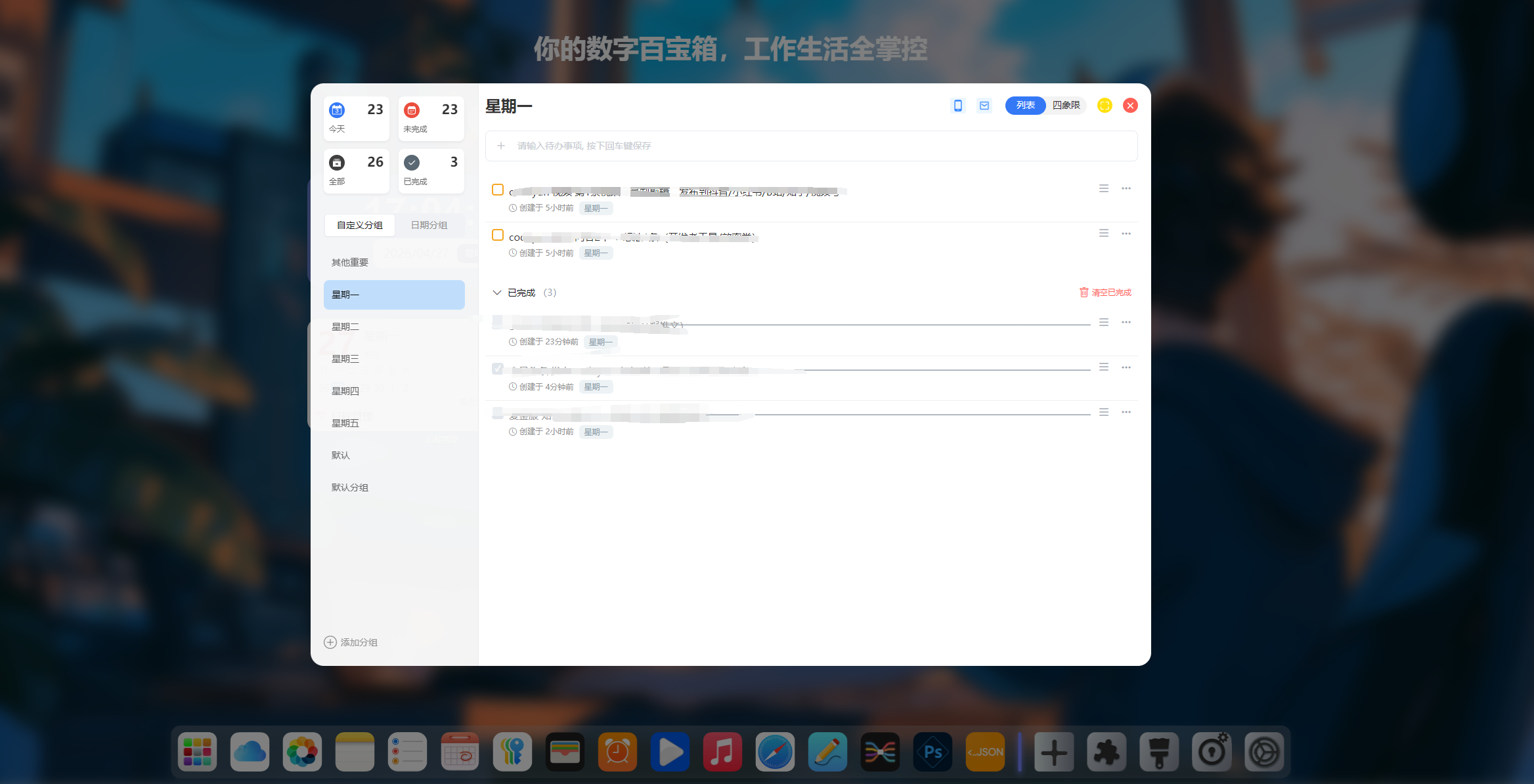 完成感拉满:做完一件事,直接在标签页里勾选,任务会自动归类到「已完成」,看着一条条被划掉,成就感十足。
