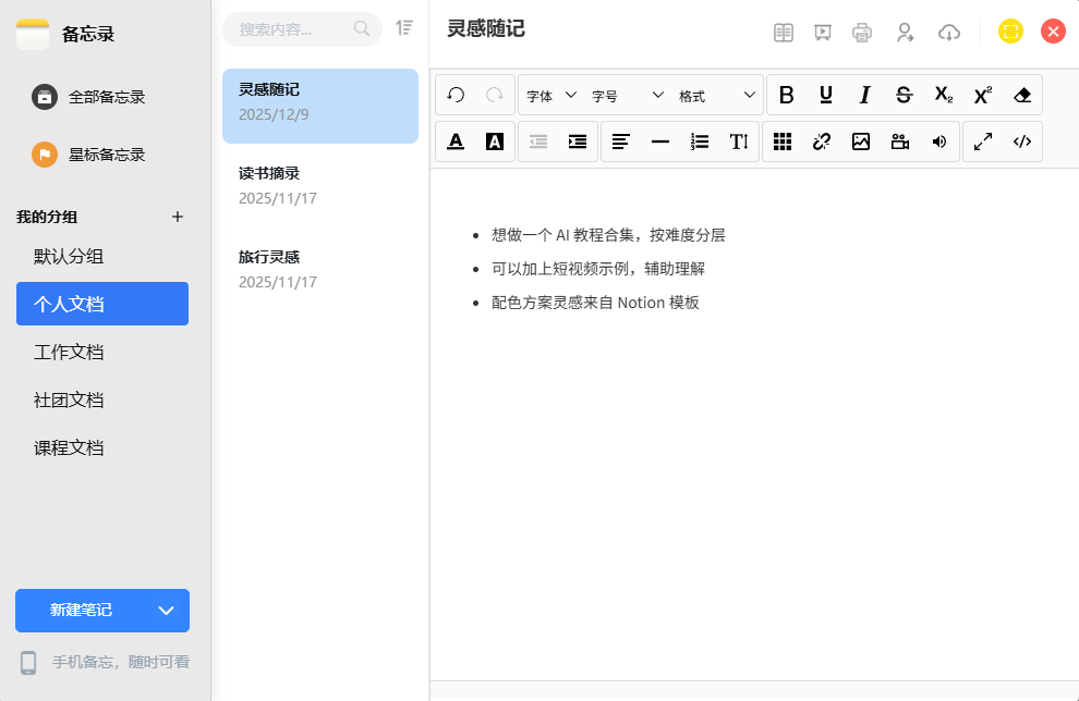 Codayun的备忘录工具非常直观,可以按照你的生活、学习、社团活动等进行分组管理,无论是读书笔记、还是论文思路、亦或是社团活动安排,就用它就可以完全管理。