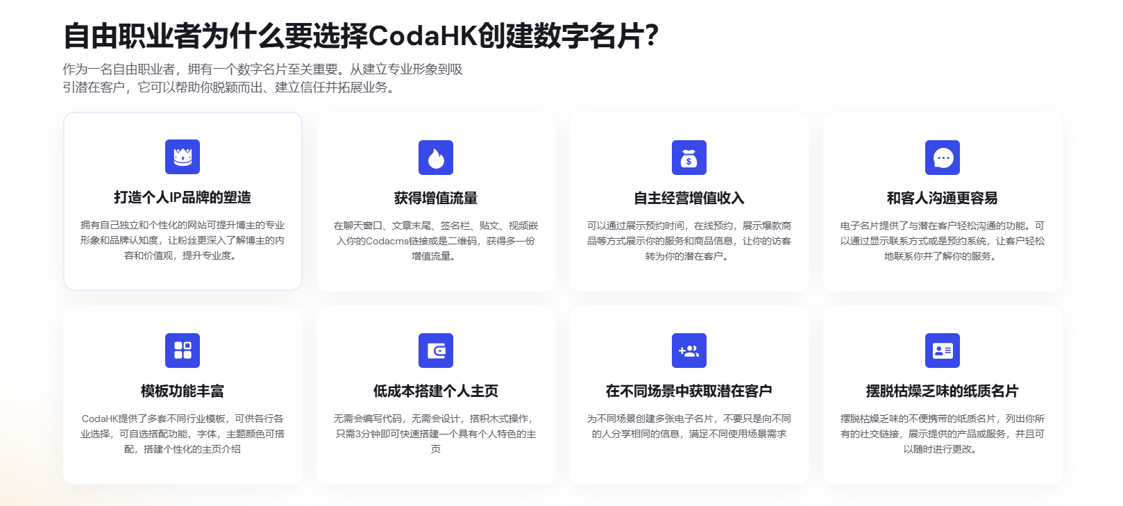 对于创业者来说,给客户、合作伙伴留下良好的第一印象是成功的关键。电子名片就像是企业的线上门面,展示着创业者的专业素养和品牌形象。通过 CodaHK 电子名片,创业者可以自定义设计风格,选择适合品牌调性的字体、模板和二维码样式,搭建个性化的主页。以 UI/UX 设计师为例,在电子名片上展示自己的设计作品、服务内容,专业的界面设计和丰富的项目展示,瞬间就能让潜在客户感受到其专业性,相比传统纸质名片,这种数字化的呈现方式更加全面、生动,有助于建立起客户对创业者的信任,为后续合作打下坚实基础。