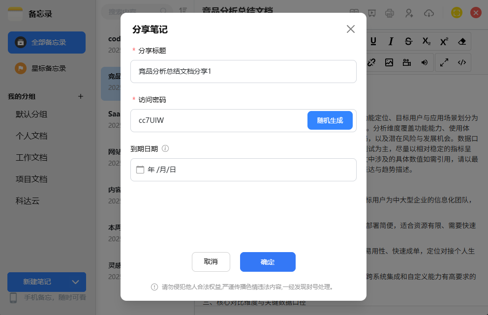 它还可以进行分享噢,这样你就可以把你完成的笔记给你的小伙伴传阅,而不用担心泄露你其他的隐私了。