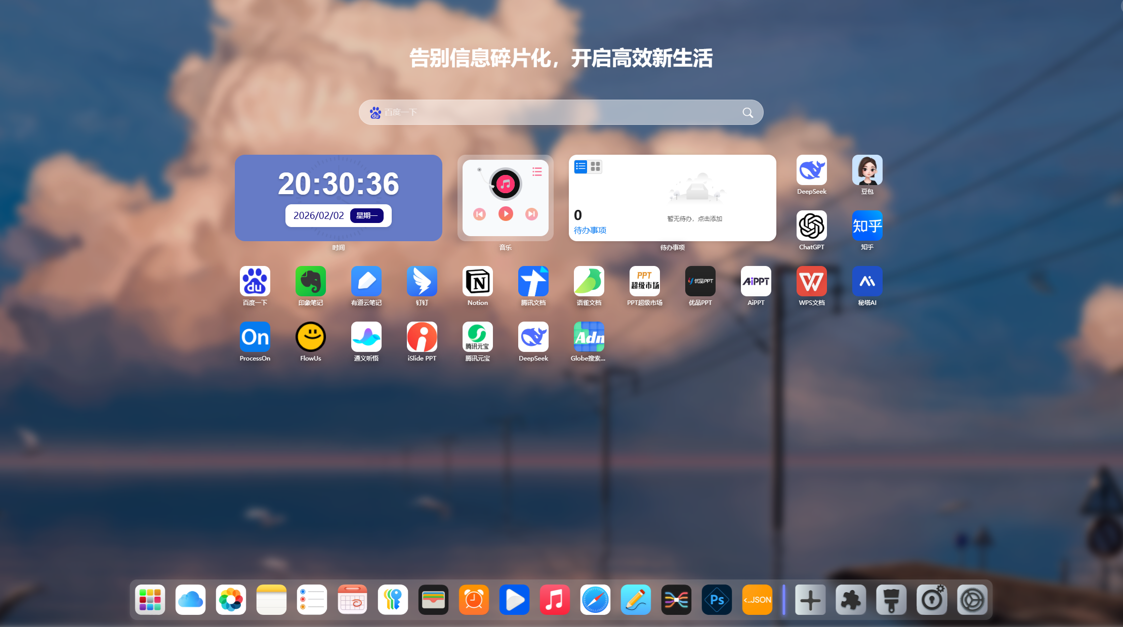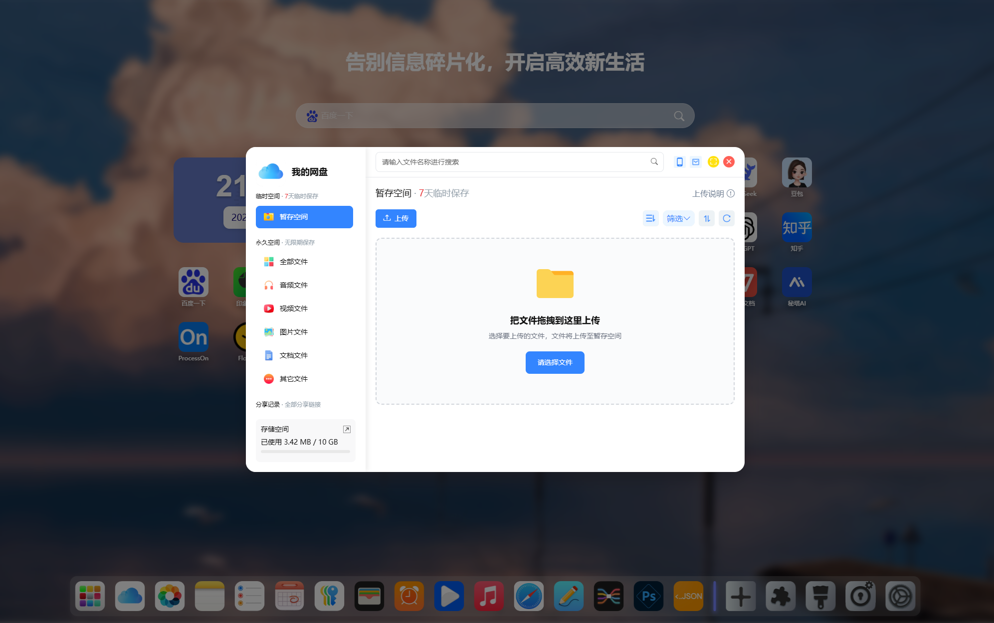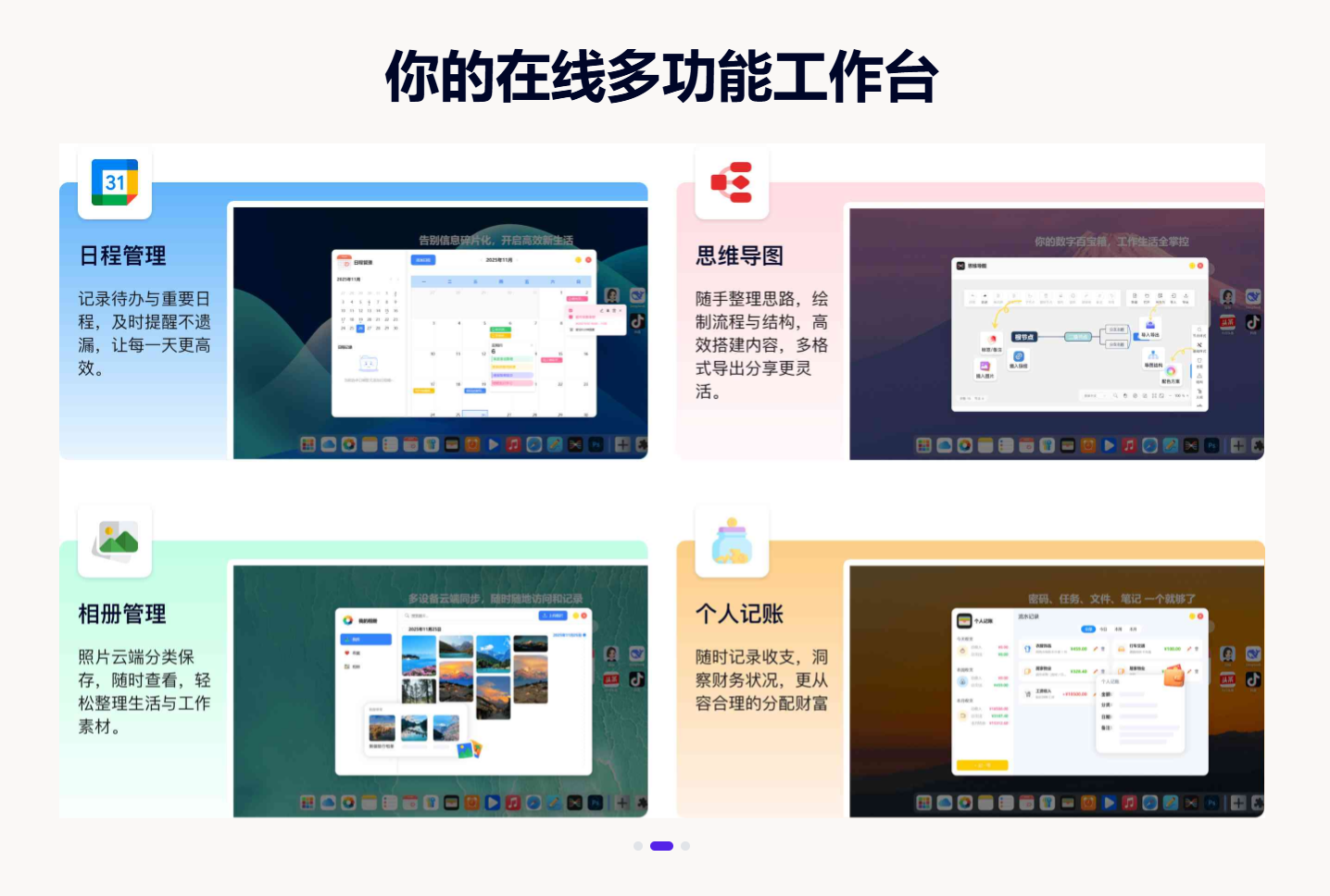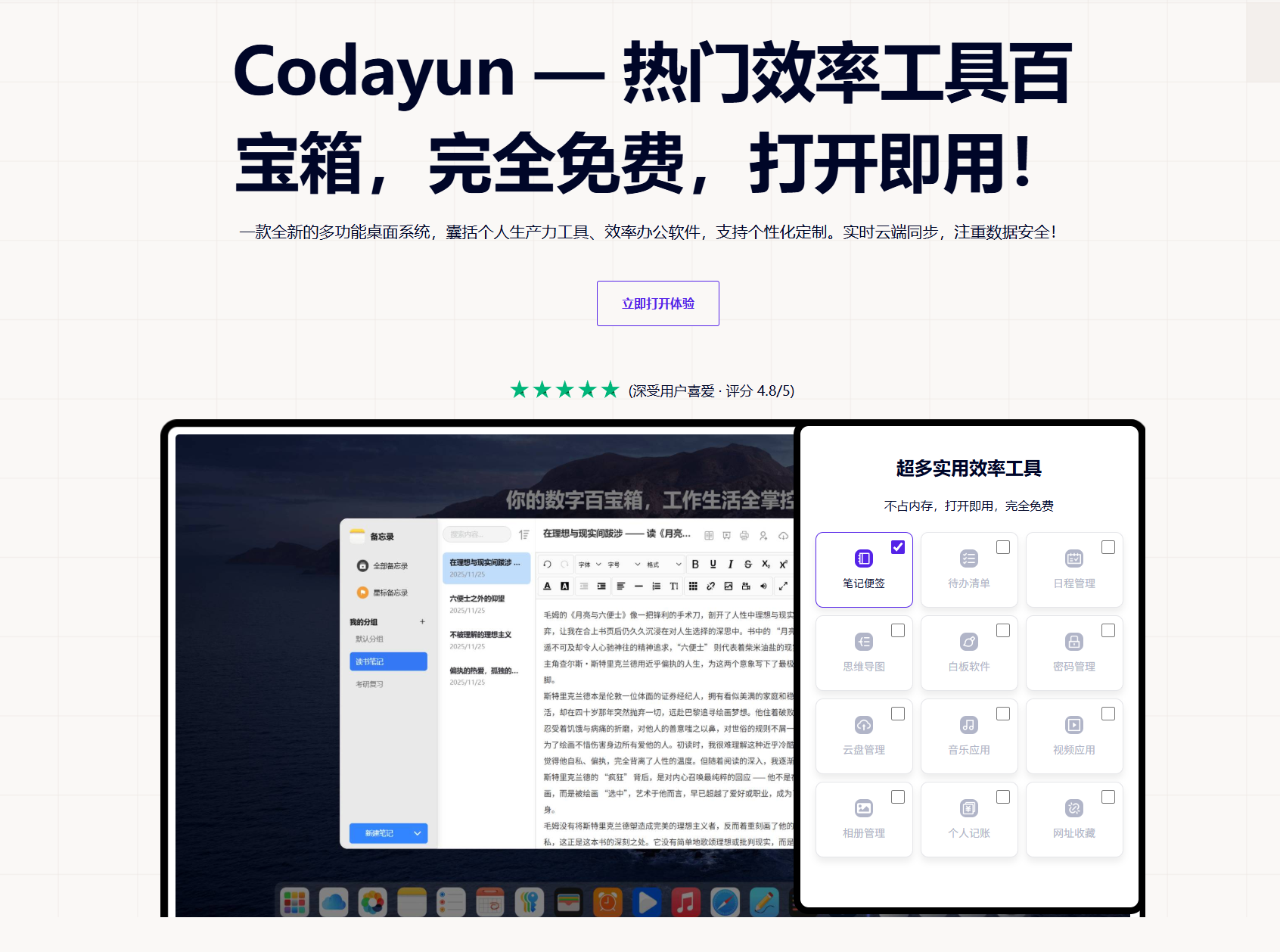 今天,我想给你介绍一次“系统级”的解决方案:CodaYun。 它主张一个简单的理念:你90%的日常数字需求,根本不需要安装任何软件。 打开一个网页,你就能获得一个集成了网盘、智能备忘录、四象限待办、在线白板、思维导图、轻度PS等超过50种工具的效率百宝箱。