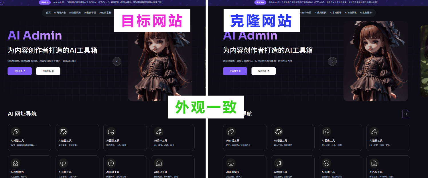 通常你只需输入目标网址,几分钟内就能完整复制一个网站框架,并在此基础上进行修改,快速搭建属于你自己的网站。这种方式不仅能大幅节省时间,还能有效降低开发和运营成本。