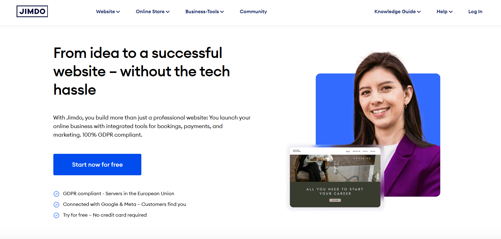 无论是初创公司需要快速上线官网,还是个人希望展示作品,Jimdo 都能以低成本和快速交付满足需求。