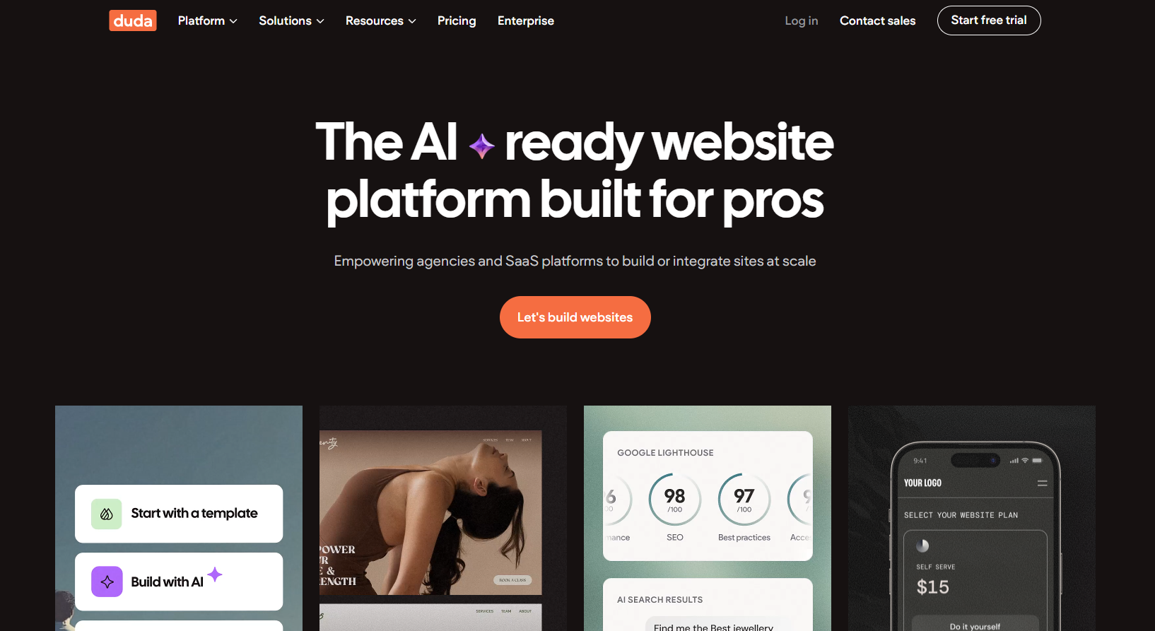 Duda 是一款面向企业和代理商的建站工具,支持可视化编辑与零代码建站,帮助团队高效搭建和管理多个企业官网。
