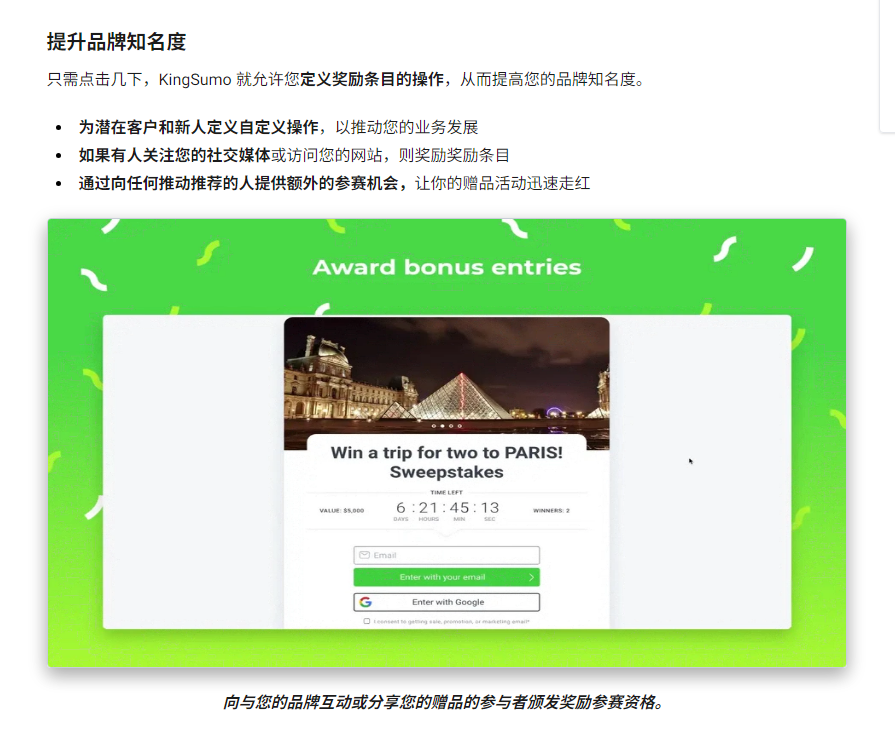 KingSumo 是一款超轻量级病毒营销传播式抽奖活动创建工具,帮助你迅速打造“用户自带传播力”的营销活动,尤其适合构建邮件营销用户池。