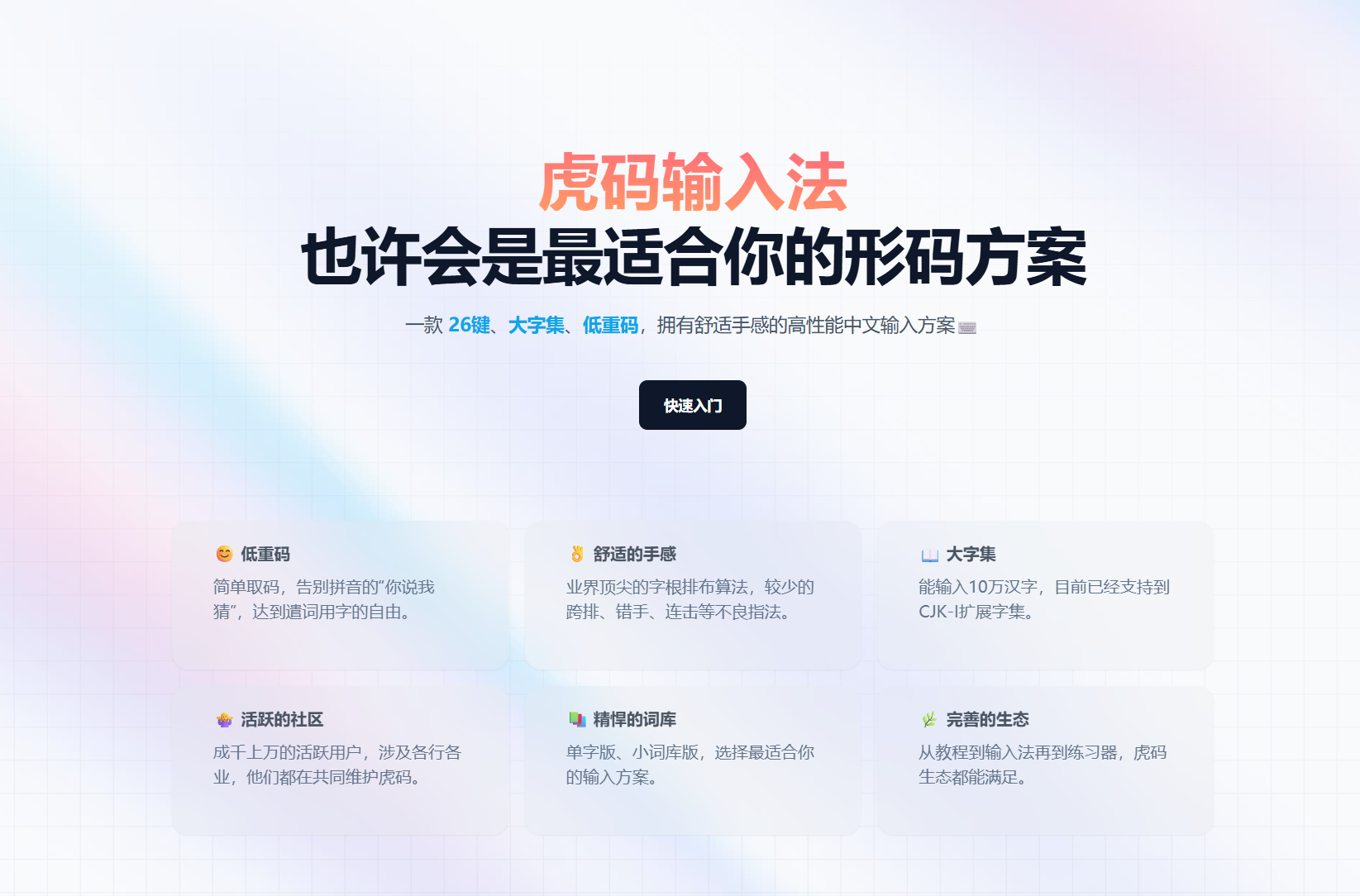 虎码输入法的核心亮点在于其双形输入方案,它通过字形和字音的结合,实现更短的编码和更快的输入效率,相较于传统拼音输入法更具专业性和稳定性。软件在设计上追求极简,没有复杂的界面或广告干扰,用户可以专注于打字本身。它支持简繁体输入切换,满足不同用户需求。对高阶用户而言,虎码还提供灵活的自定义方案,用户可根据习惯优化输入效率。其目标是解决拼音输入法在速度与精确度上的瓶颈,同时避免全形输入法的学习成本过高问题。对于日常办公、写作或编程场景,虎码都能带来流畅的输入体验。