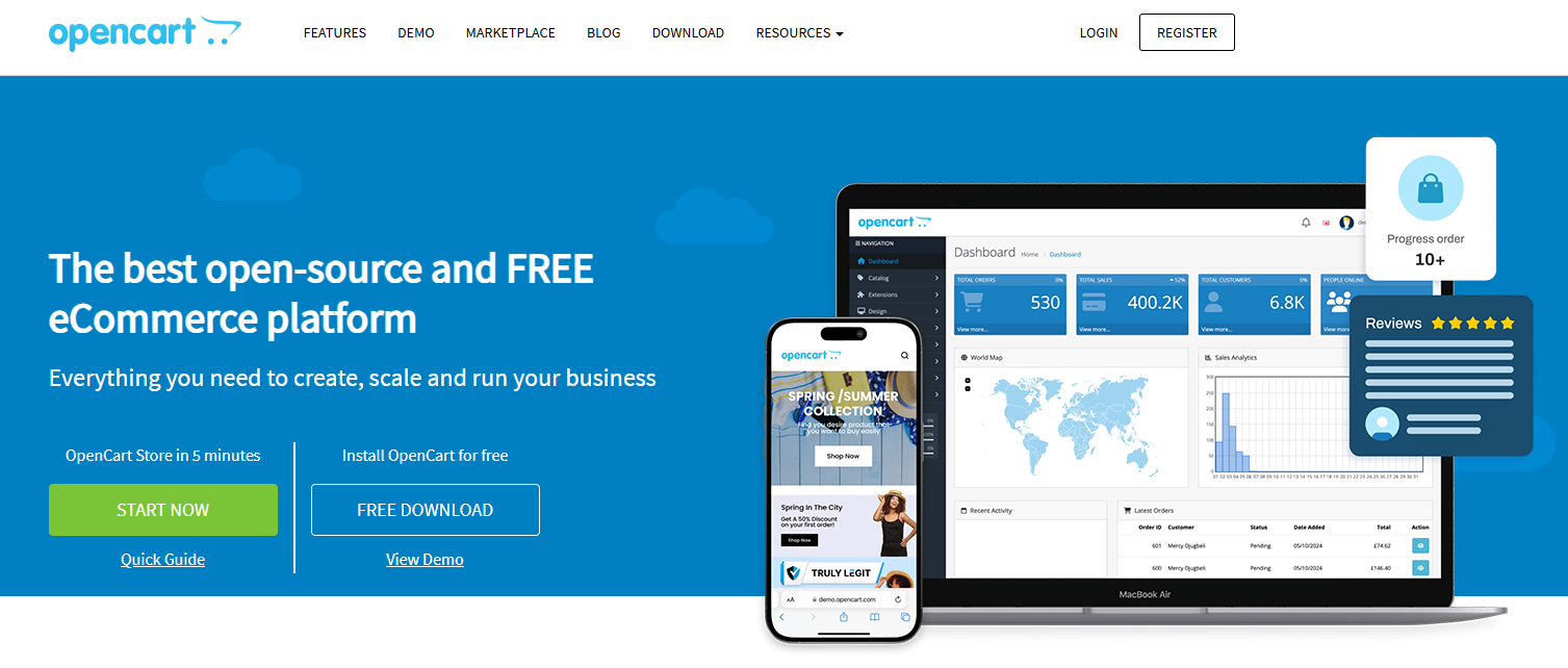 OpenCart 是一款免费开源的电商系统,支持多语言、多货币和多店铺,适合中小企业快速搭建可控、可扩展的独立电商网站。