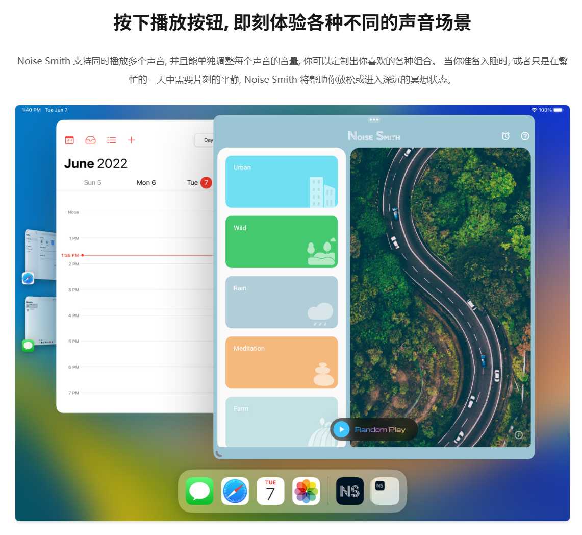 Noise Smith 提供 35 种高保真白噪音,包括城市、野外、风雨声、冥想及农场主题音效。用户可以自由组合多种声音并独立调节音量,创造多层次音景;支持睡眠倒计时(如番茄工作法使用);适用于冥想、提高专注力或助眠场景。