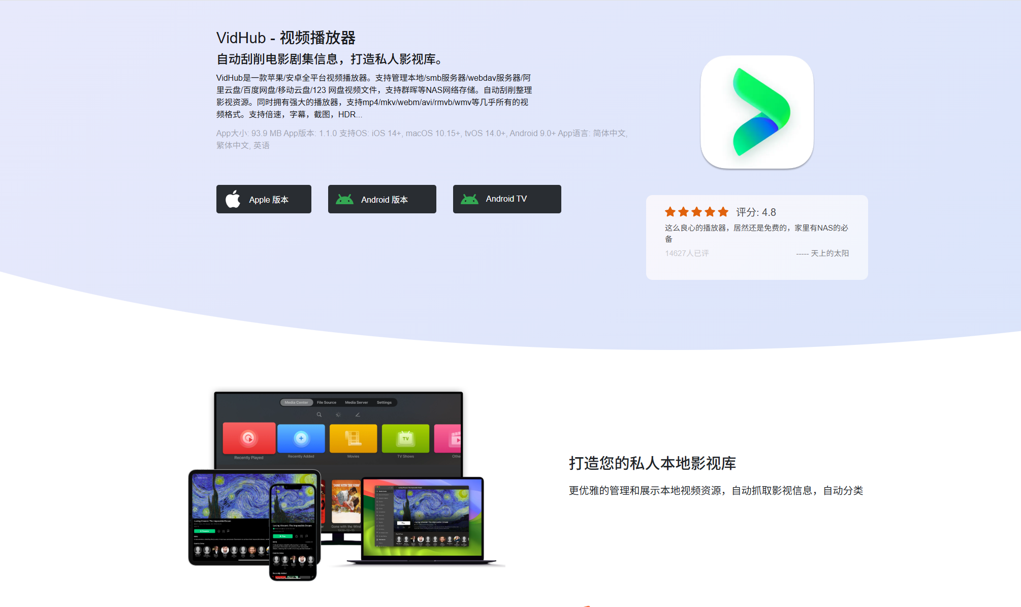 VidHub是一款Android端高性能本地视频播放器,支持几乎所有格式解码、HDR渲染、弹幕与倍速播放,提供极佳的视觉体验和功能完整性。