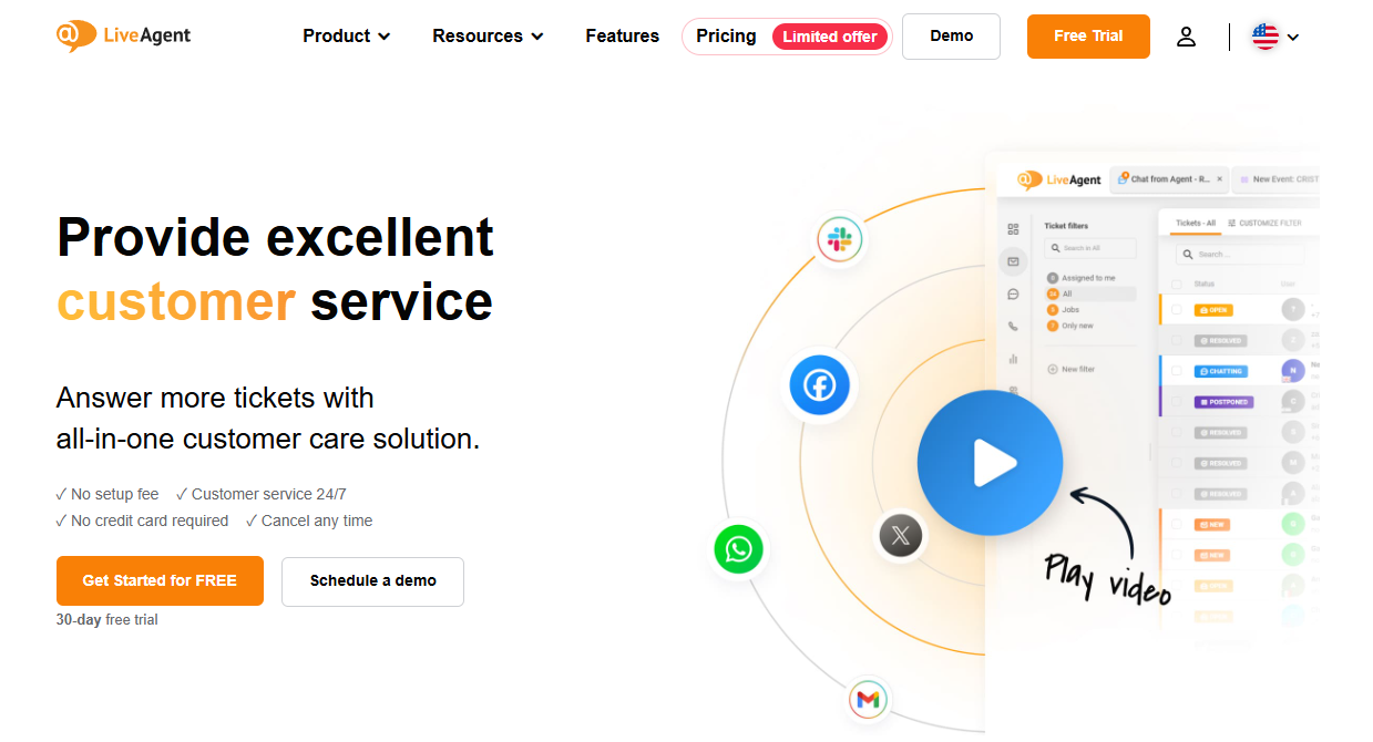 LiveAgent 提供一个全渠道的客户支持平台,整合了电子邮件、实时聊天、唿叫中心、Facebook Messenger、Instagram、Twitter 和 WhatsApp 等渠道,让客服可以在一个平台中统一处理所有客户沟通。它支持自动分配工单、内置工单标签和优先级、客户满意度评分、知识库管理,还支持自动化规则、聊天机器人和 SLA 管理,帮助企业节省人力成本的同时,提升客户体验。通过报告功能,管理层可轻松了解客服效率和客户满意度。