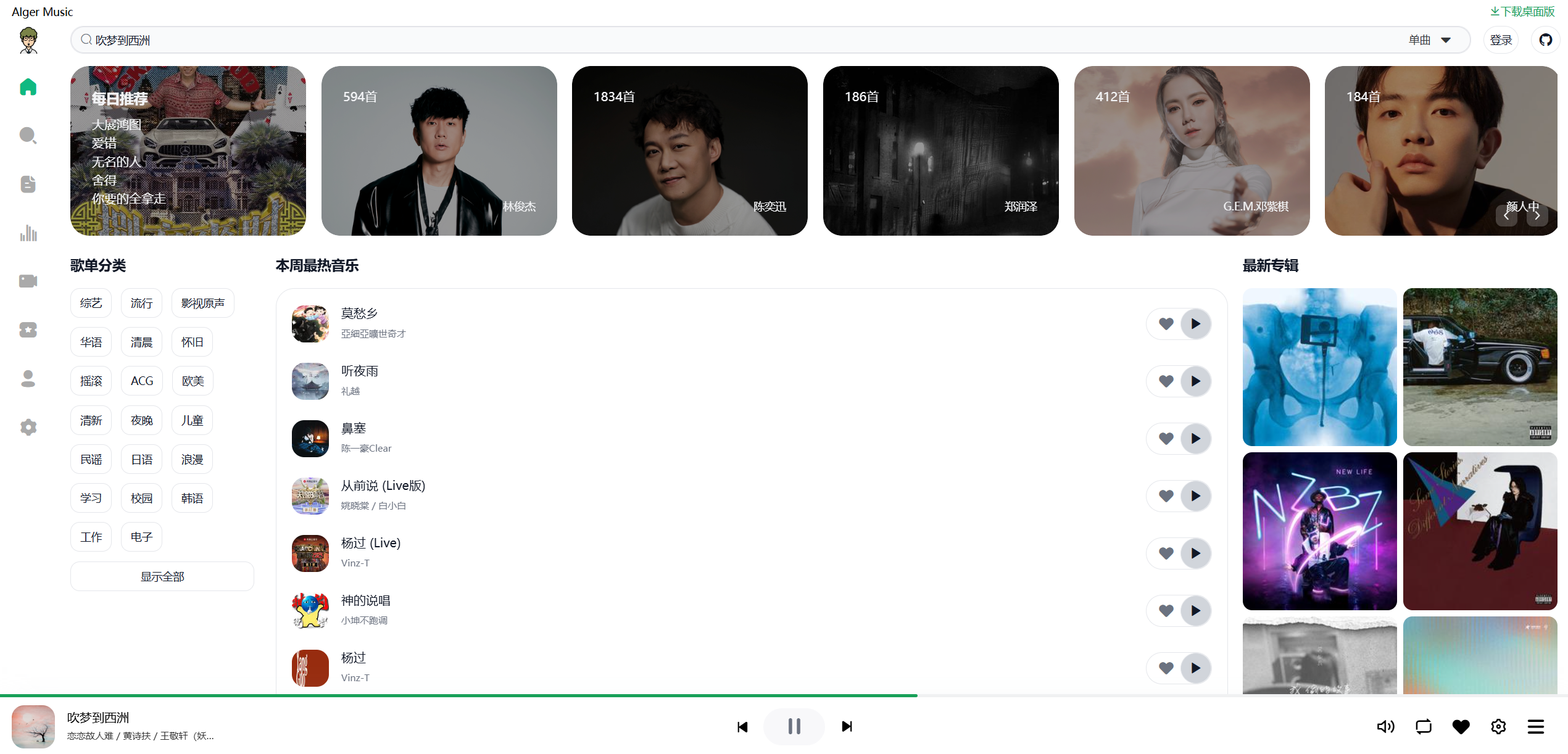 AlgerMusicPlayer 是一款可导入阿里云盘、OneDrive 等网盘资源的简约音乐播放器,支持多平台播放,满足用户随时听自己云端收藏音乐的需求。