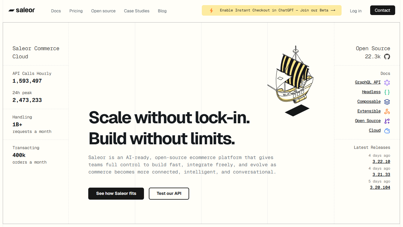 Saleor 是一个高性能、可组合式的开源电商系统,采用现代前后端分离架构,支持多店铺、多渠道销售与高度定制,适合希望掌控数据、安全与品牌体验的中大型电商业务。